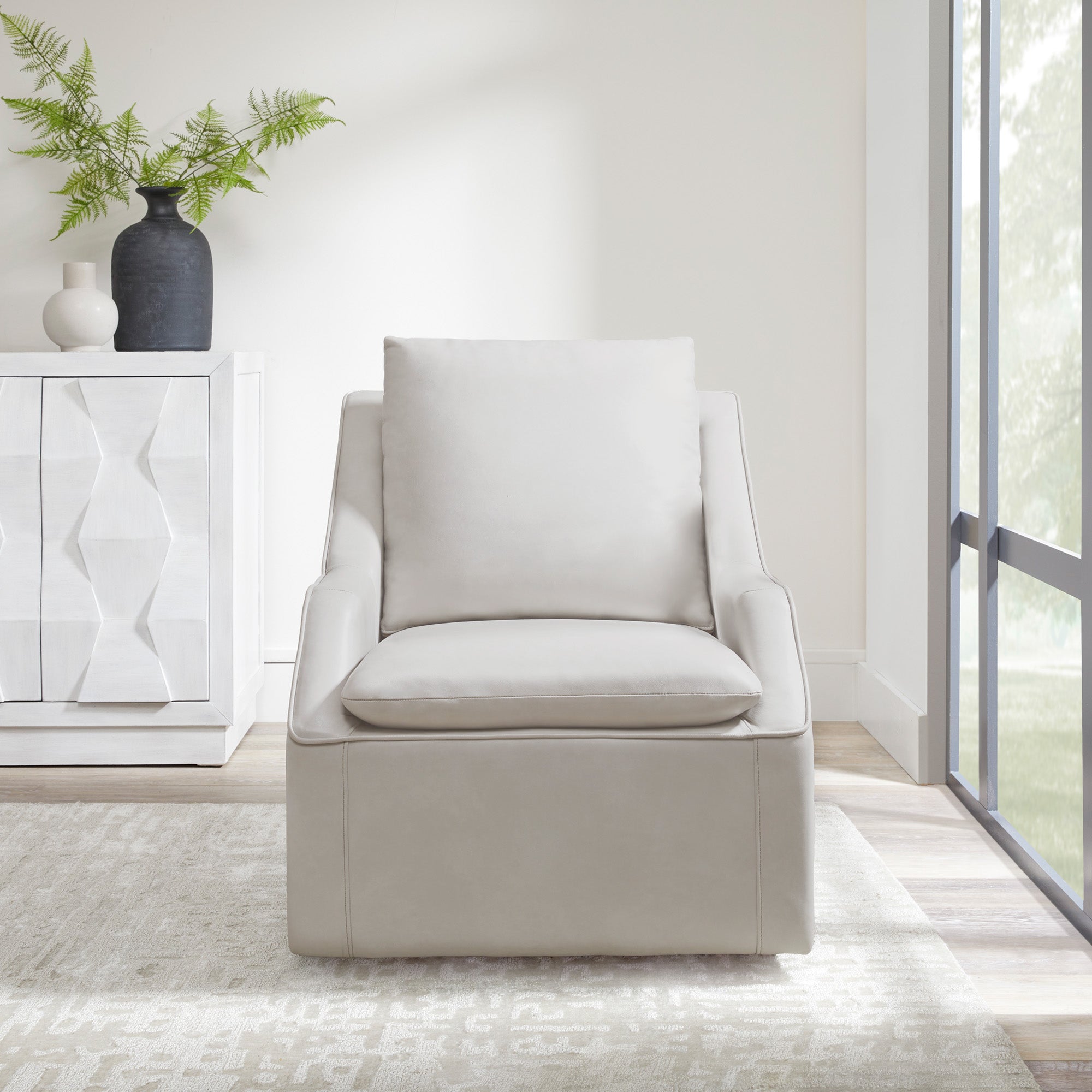 The Asher accent chair features a 360-degree swivel for ease of motion and a modern low-profile design. The comfortable, attached pillowtop seat has subtle welting and stitching, and the back cushion is removable, making cleaning a breeze. The Asher accent chair adds comfort and style to any room and is available in various colors in 100% top-grain leather.