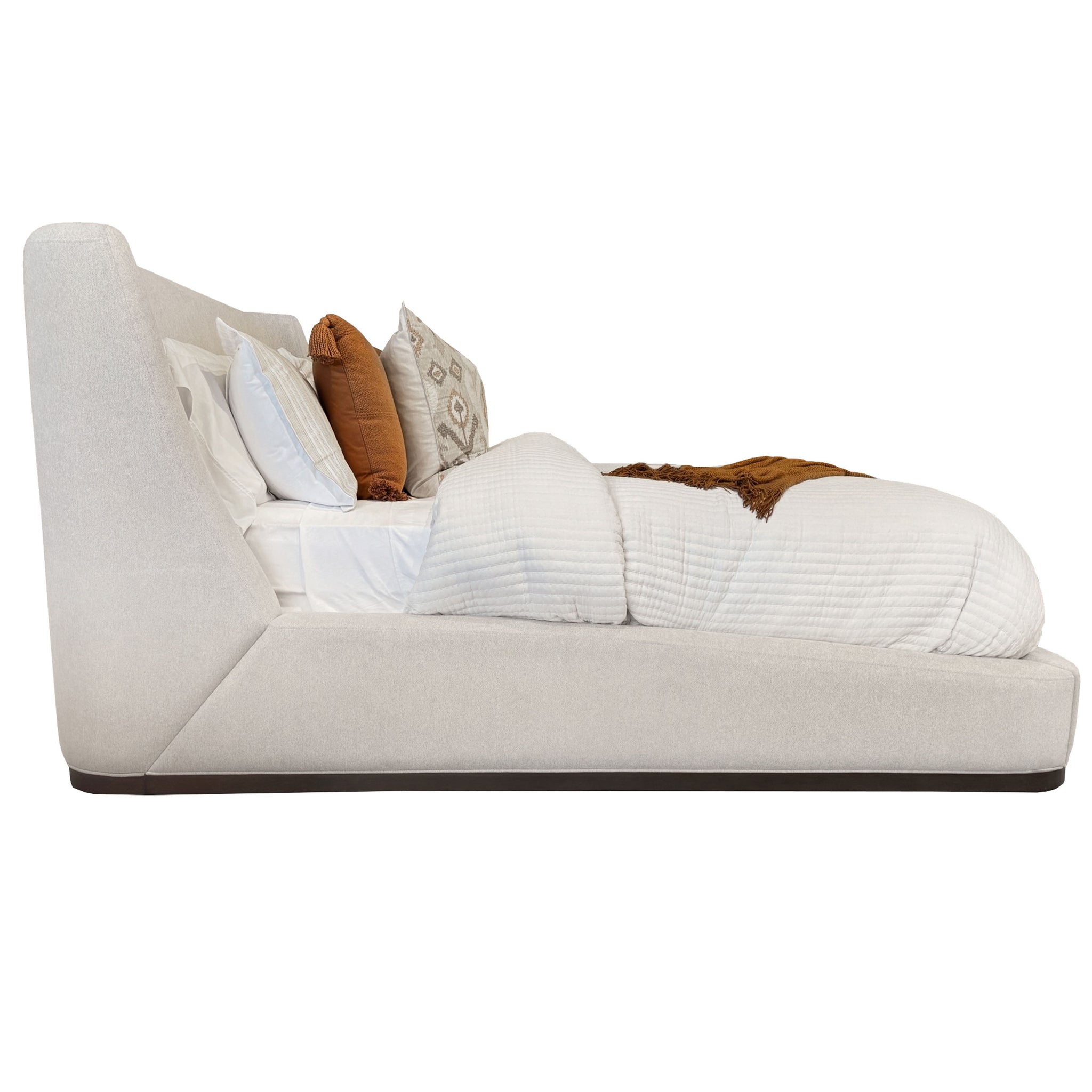 Add a complete cool factor to any bedroom with the shelter-inspired Sofia bed. Its tapered rail creates a sleek look, and the medium wood-tone trim adds a modern touch. The clean lines and large headboard suit various styles. Available in Queen or King size, it does not require a foundation, making it a perfect centerpiece for any bedroom.