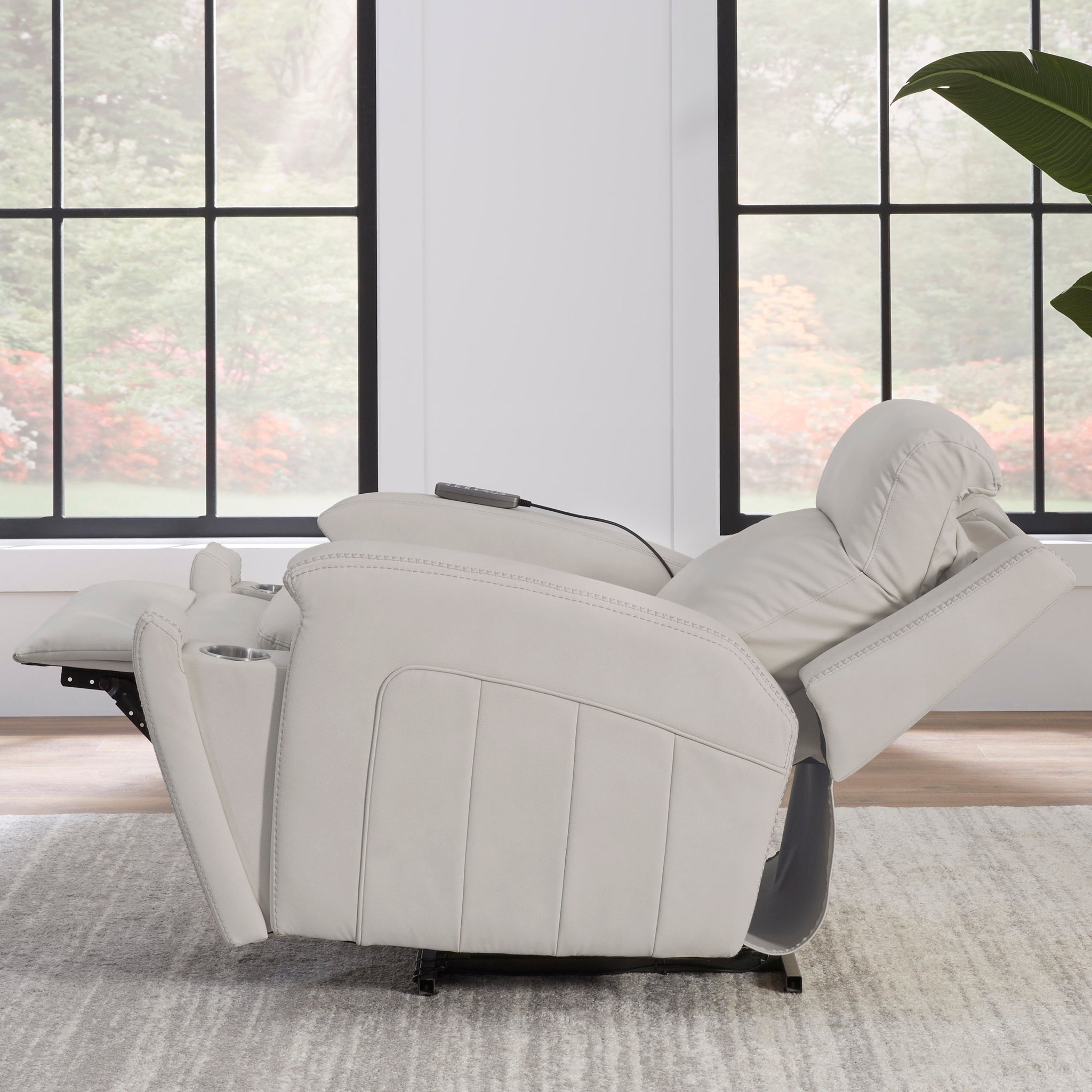 Experience comfort and convenience with the feature-packed Armstrong recliner. Designed with power recline, adjustable lumbar support, and an independent headrest, it adapts to any position. Durable synthetic leather adds a sleek look, while built-in heat, massage, ambient lighting, and smooth gliding motion enhance relaxation. A simple remote puts control at your fingertips.