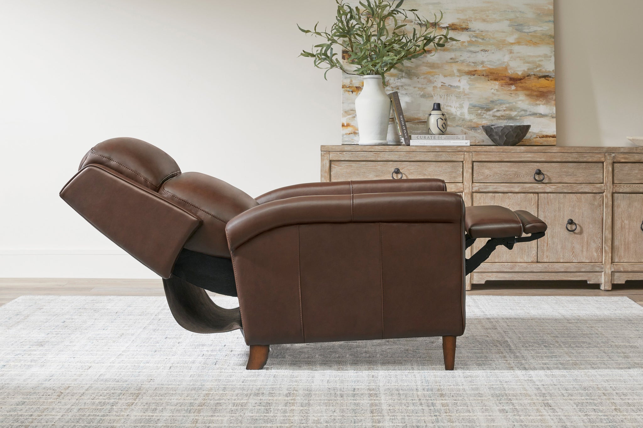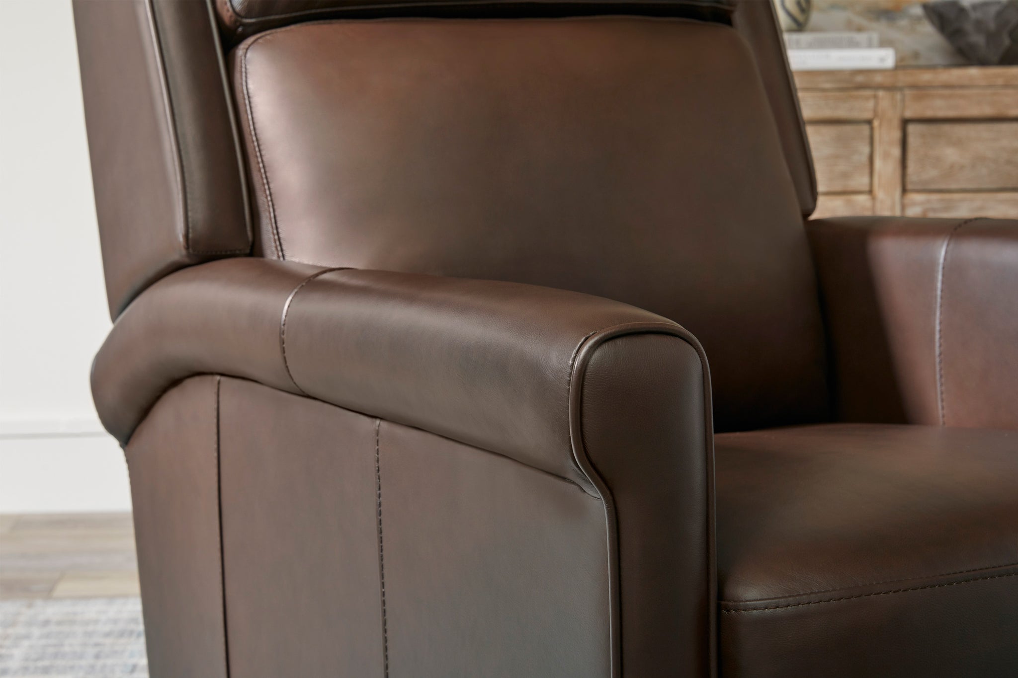 The ever-stylish Northfield is a high-leg chair with a power recline and headrest for easy adjustment. It features soft leather upholstery in a custom match, key arms, and detailed stitching. With its hidden extension footrest, Northfield fits into multiple spaces, adding extra comfort and a trendy look.