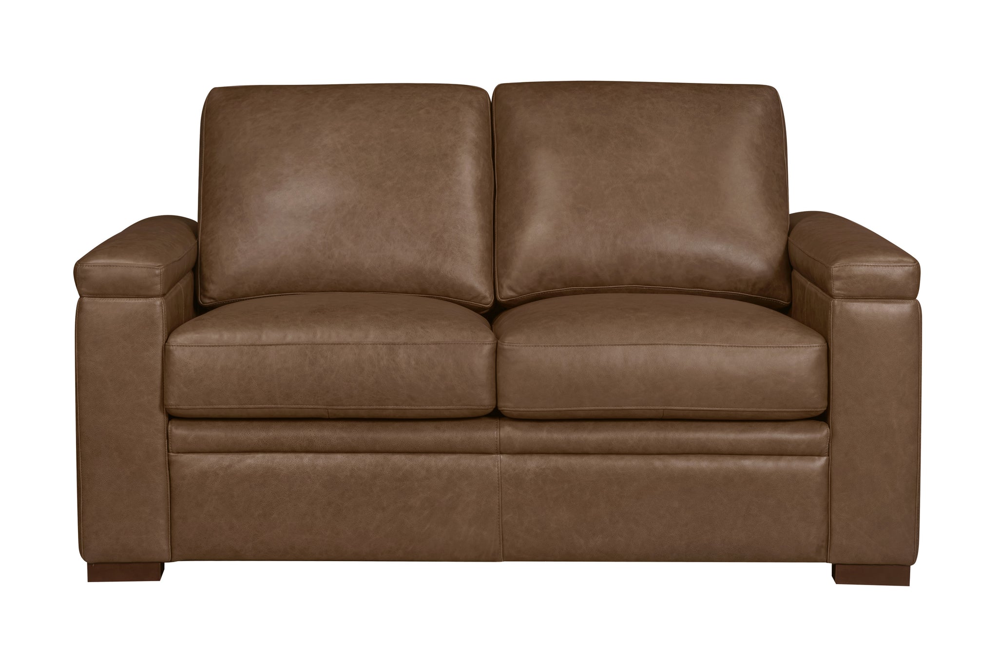 The Garrison loveseat offers spacious comfort with a clean, tailored look made for everyday living. Upholstered in rich top-grain leather, it features wide, padded track arms, plush supportive cushions, and a durable spring system for lasting relaxation. Substantial hazelnut wood legs ground the design with warmth and stability, creating an inviting seat that’s perfect for sharing and settling in.