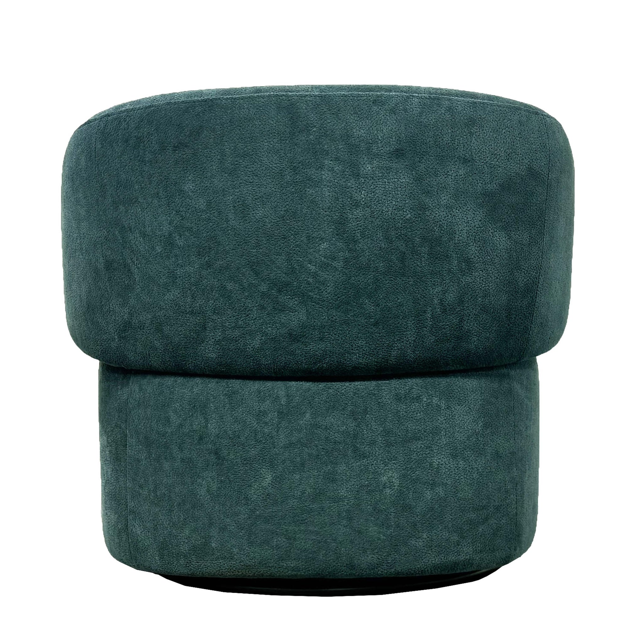Sink into modern luxury with this beautifully crafted accent chair. Upholstered in 100% polyester with a soft, velvety hand, it offers a plush feel that invites you to linger. A luxuriously deep seat and curved, wrapped back provide enveloping comfort, while subtle inset welting adds tailored refinement to the arms and seat. The exposed chestnut wood arms add warmth and character, contrasting effortlessly with the sturdy black steel base. Designed with a 360-degree swivel and a padded apron base from seat to floor, this chair blends style, support, and flexibility—all at a comfortable 18" seat height.
