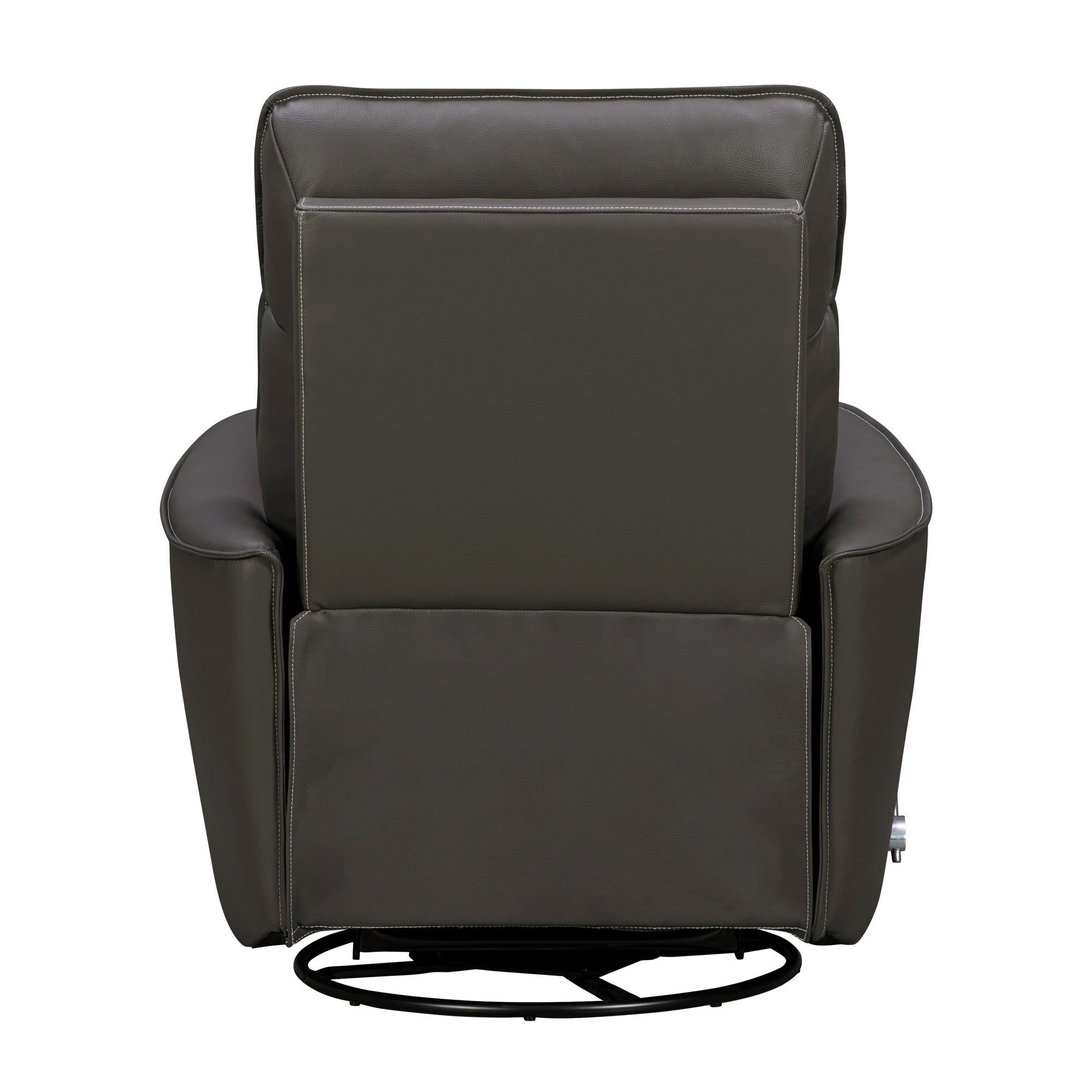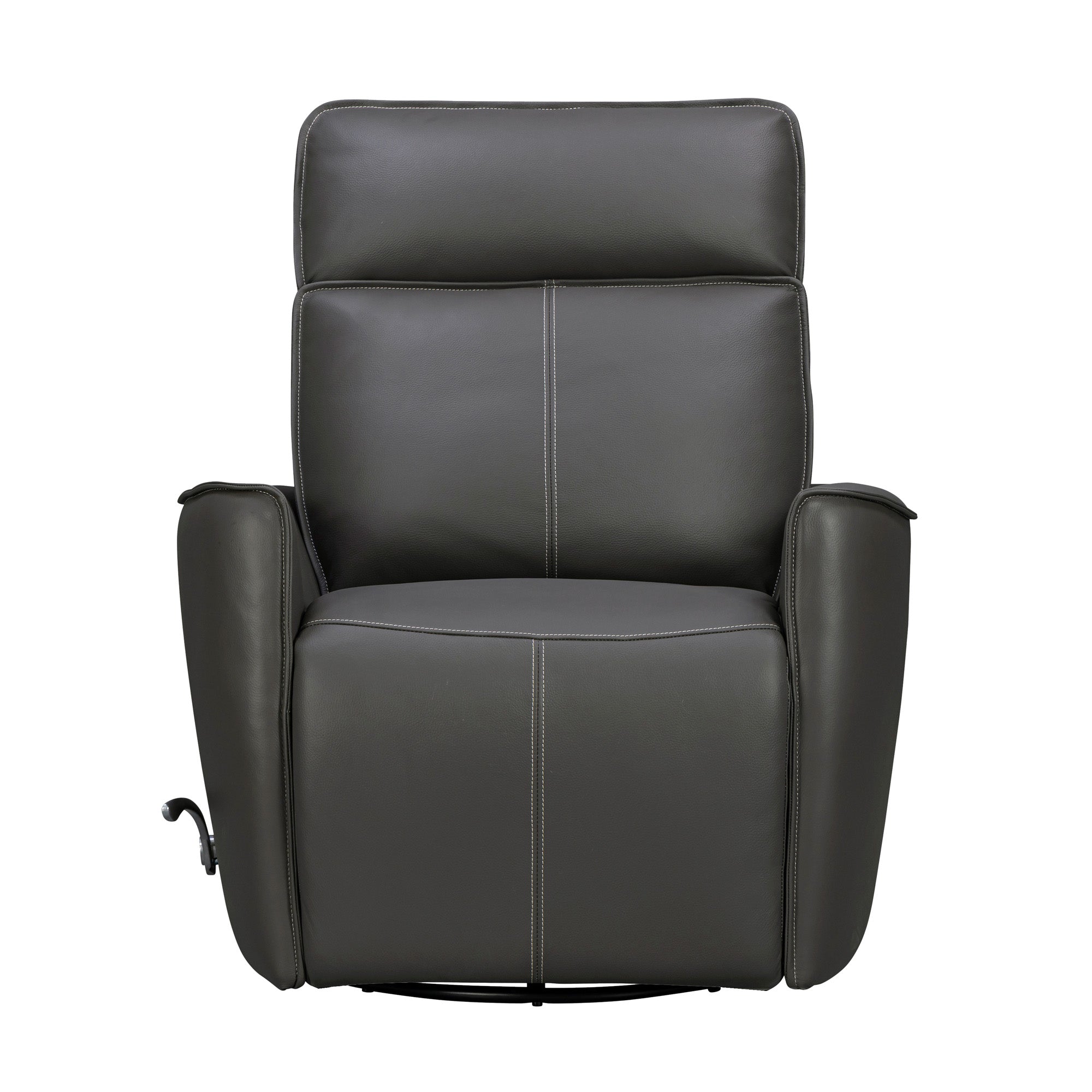 The Roxy recliner is a timeless classic designed for everyday comfort. Featuring a smooth manual recline, 360-degree swivel, and gently curved arms, it delivers effortless relaxation with refined style. Genuine leather with a custom match and contrast stitching add elevated detail, while its tailored silhouette makes it a versatile fit for both traditional and transitional spaces.