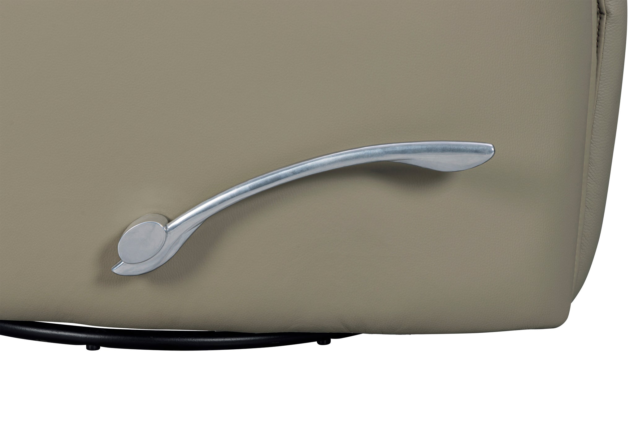 The Roxy recliner is a timeless classic designed for everyday comfort. Featuring a smooth manual recline, 360-degree swivel, and gently curved arms, it delivers effortless relaxation with refined style. Genuine leather with a custom match and contrast stitching add elevated detail, while its tailored silhouette makes it a versatile fit for both traditional and transitional spaces.